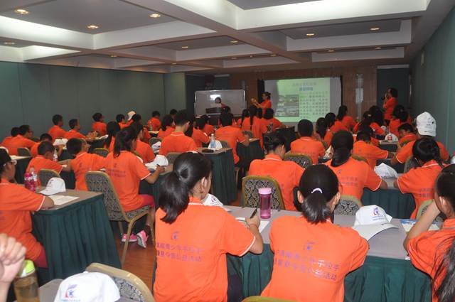 开营仪式结束,同学们回到宿舍小憩片刻之后,便坐着电瓶车前往乒乓馆,正式进入本次质量夏令营的教育活动环节。市局质量管理处副处长史燕君担任第一讲《质量管理基础知识》的主讲老师。